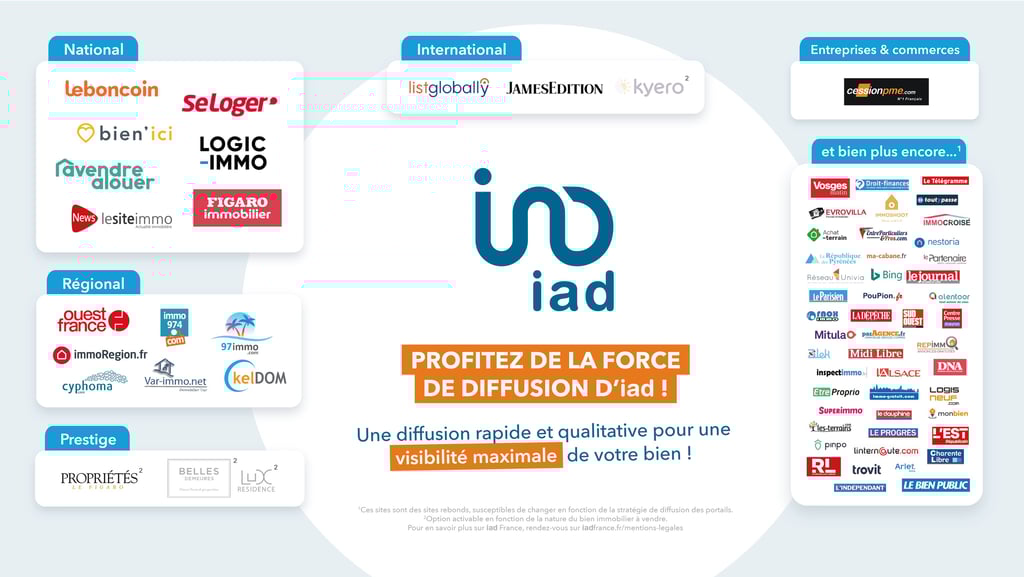 Votre bien sera diffusé sur plus de 100 portails immobiliers nationaux, internationaux et spécialisés pour une visibilité maximale.